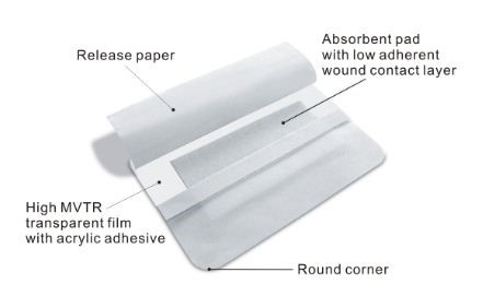 Film Island Dressing combines the benefits of nonwoven wound dressing and a high MVTR, waterproof film. Made of Transparent semi-permeable polyurethane film, Absorbent pad with low adherent wound contact layer and hypoallergenic acrylic adhesive.